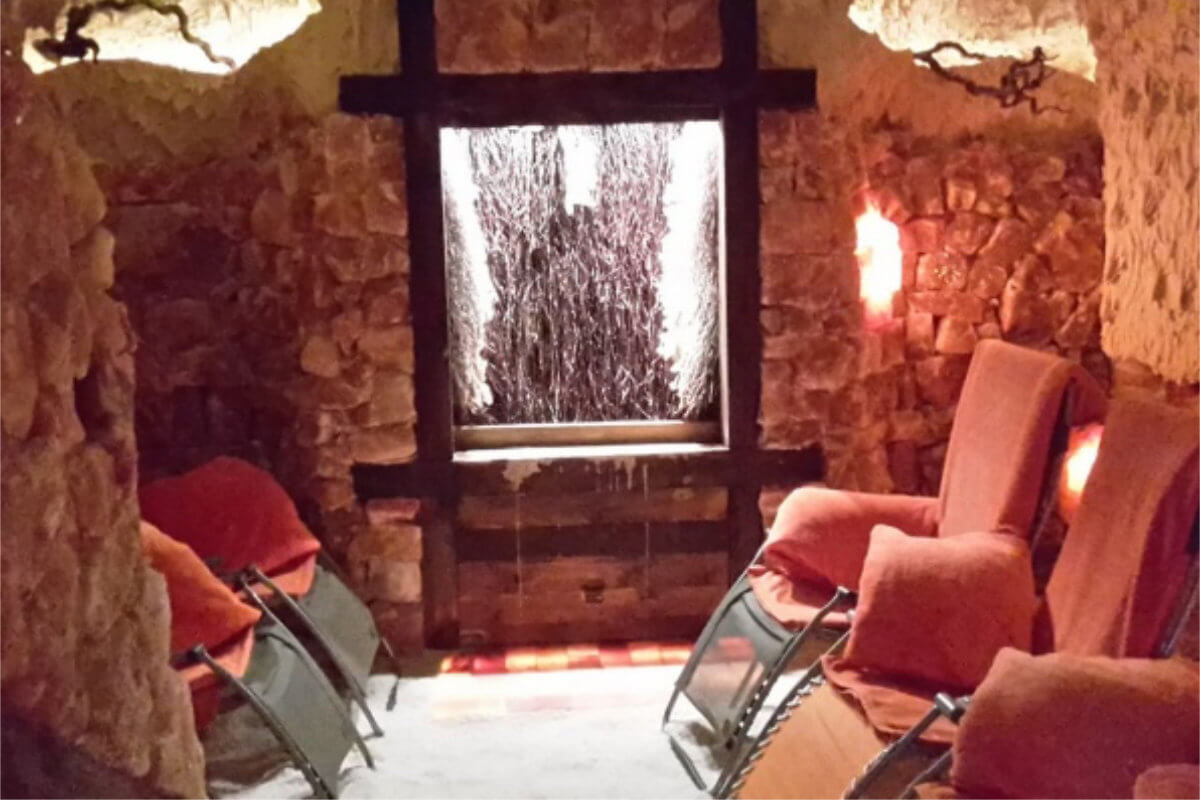 Innenansicht der Sitzmöglichkeiten in der Salzgrotte