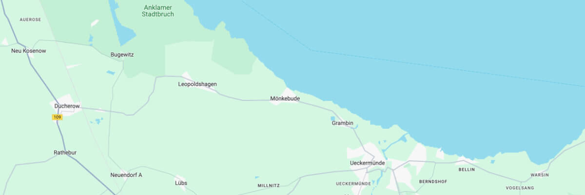 Sie erreichen Mönkebude von der A20 südlich kommend über die Abfahrt Pasewalk. Von Pasewalk aus fahren Sie über Ueckermünde nach Mönkebude